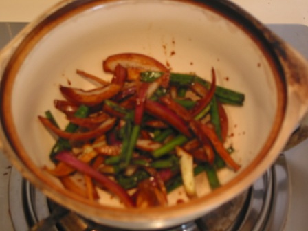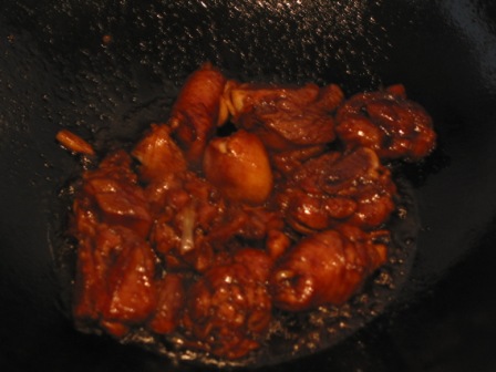 油热放鸡腿,放白糖快炒,关火,把材料到进沙锅;