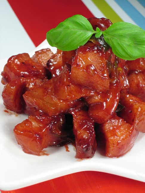 红糟五花肉: 做法: 1. 将五花肉煮8分熟,晾凉,切成麻将大小。 2. 油热后炒3分钟,然后放入葱段、大蒜、红糟和少许水中火炖15分钟即可。 味道:肉肥而不腻,酸甜中带有一些酒香,非常好吃。
