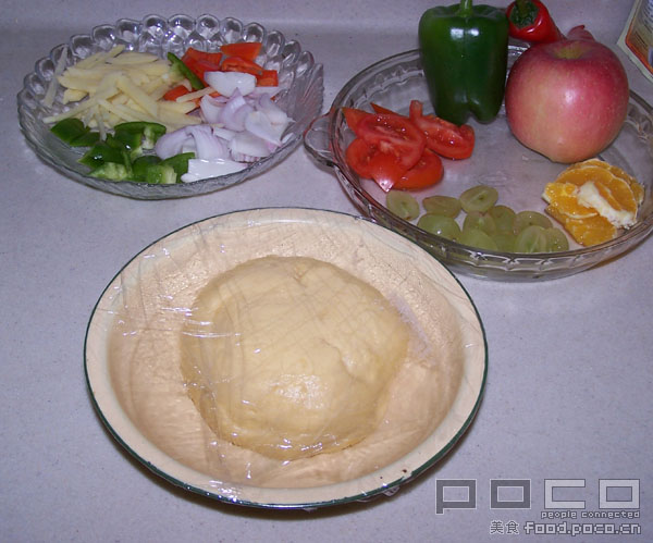 丰盛并不意味着桌上的菜式有多少,而在于盘中美食有几分‘姿色“,有几分”火辣“。一盘自己亲手制作的比萨端上桌来,五彩缤纷!飘香诱人!哈哈,陈婆卖瓜!够姿色!够火辣现在是火辣海鲜--------与SUNNY切磋了第一个水果PIZZA,感觉不错决定火辣海鲜比萨由LG独享备足了虾,鱿鱼,洋葱,青椒,红椒,土豆制作工序基本于水果比萨类似