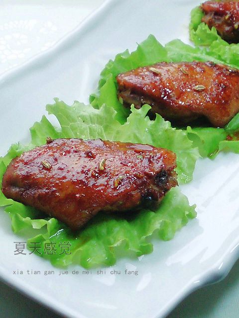 调味料: 盐 料酒 烤肉酱 3勺 小茴香 一小勺 咖喱粉 一小勺 做法: 把葱姜蒜切末,鸡翅在肉厚的地方划两刀,放入碗中加葱姜蒜末和调味料腌2个小时,烤盘铺锡纸摆上腌好的鸡翅,放入预热220度的烤箱烤10分钟,拿出来翻面刷上腌肉汁,在烤10分钟