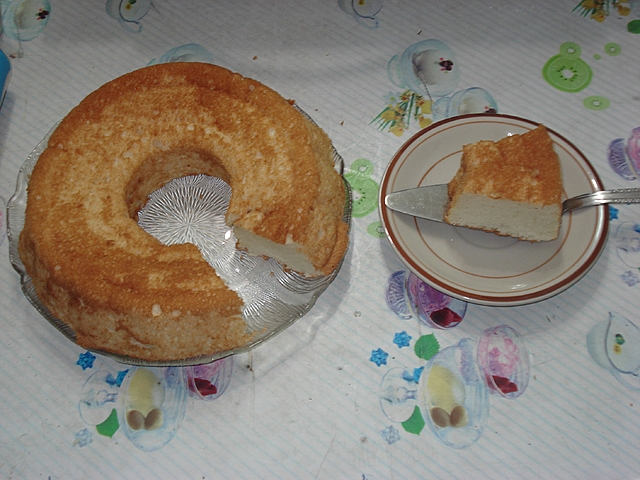 今日整雪糕,用剩D蛋白,就用左来整天使蛋糕,其实我没食过外面买个D天使蛋糕,晤知道真正既天使蛋糕口感点样~但就好中意天使蛋糕白白甘样~但我整出来既就变甘样了~唉~失望~口感呢~又5似一般噶蛋糕~棉软就棉软了~但有D弹性~又有D