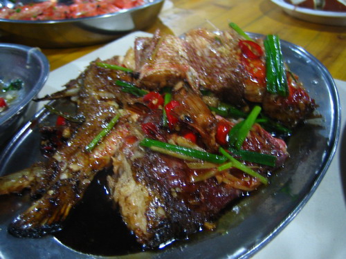 红烧石斑、香辣大带子、海星汤、蒜香小鲍鱼