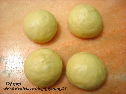 4、排放於模具中,再放溫暖處繼續發酵約40分鐘,掃上蛋液進烤箱(先預熱)180度烤約25分鐘即可。