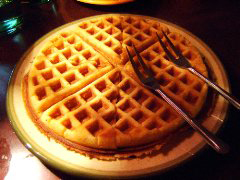 ![]() 布鲁塞尔松饼 Gaufres Bruxelles 痴痴的暗恋,用褐色的小饼和一束泛着北极星光的满天草来深情倾诉...... 材料:面粉120g 砂糖30g 干酵母粉一小勺 全蛋2个 牛奶200g 盐1/2小勺 奶油60g 香草精少许 1:牛奶蛋混合后加温到40度 2:将面粉.砂糖.干酵母粉放入盆中混合后,慢慢倒入中混合拌匀. 3:将奶油融化后稍微冷却一下,与盐,香草精加入中拌匀. 4:用保鲜膜盖住盆,在28-30度的温度下发酵约1小时. 5:将松饼机加热后,涂上融化的奶油,倒入松饼面糊烘烤,至金*为止.