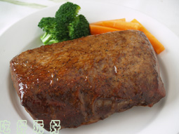 偶来也,上会给大家做了一个中式的红烧肉,感搅如何?这次给大家做一个西式猪排,米办法,谗不到大家死不罢休!哈哈主要原料:1.猪肉,偶选的是猪的通脊,不要肥肉的那种,一定要挑没有瘦肉精的噢。也可以随自己的喜欢选择。2. 黑椒烧烤腌料,保密呦。料肉水比从略。3.水可是很有讲究的,一定要是冰水,最次也要是凉水,U的选择决定U的命运,哦,是U的选择决定肉的命运!现在宣读圣旨(其实就是操作过程),大家跪听,哈哈,今天大赦天下,你们可