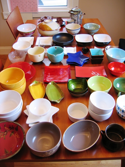 网上大厨是怎样炼成的---1.美器篇 人常说女人三分长相,七份打扮,美食也是如此。要想成为一个网络大厨,也要把手中的美食打扮得漂漂亮亮。盘子就是美食的衣服,一个漂亮的盘子配上一道鲜美的菜肴可以使人赏心悦目,垂涎欲滴。 刚开始学做菜的时候只关心菜本身,当做菜有了一些经验,就开始注意起盘子、碗、桌布、筷子勺子。每次逛街都不去看衣服了,直接就奔餐具店,每样餐具有爱不释手。国外稍稍好一点的餐具,比如一个盘子都在10美金左右,太贵卖不起,所以心里瞄好盘子就等啊等,一到降价的时候就赶紧收在囊中,慢慢的,家里的柜子摆放着各种样子各种颜色的厨具,以至于如今每个菜炒好之后,都不知道用哪个好。 美食和美器相配需要一点点审美观,和衣服搭配有异曲同工之妙。比如菜里有绿色的就可以配绿盘子,红色的就配红盘子,保持色调的统一是美感的关键。我的餐具里有几个色系,绿色、白色、红色、咖啡色、蓝色、黑色。材质大致上是瓷器,透明感的玻璃也给人一种清新的感觉。 1.深绿的质感