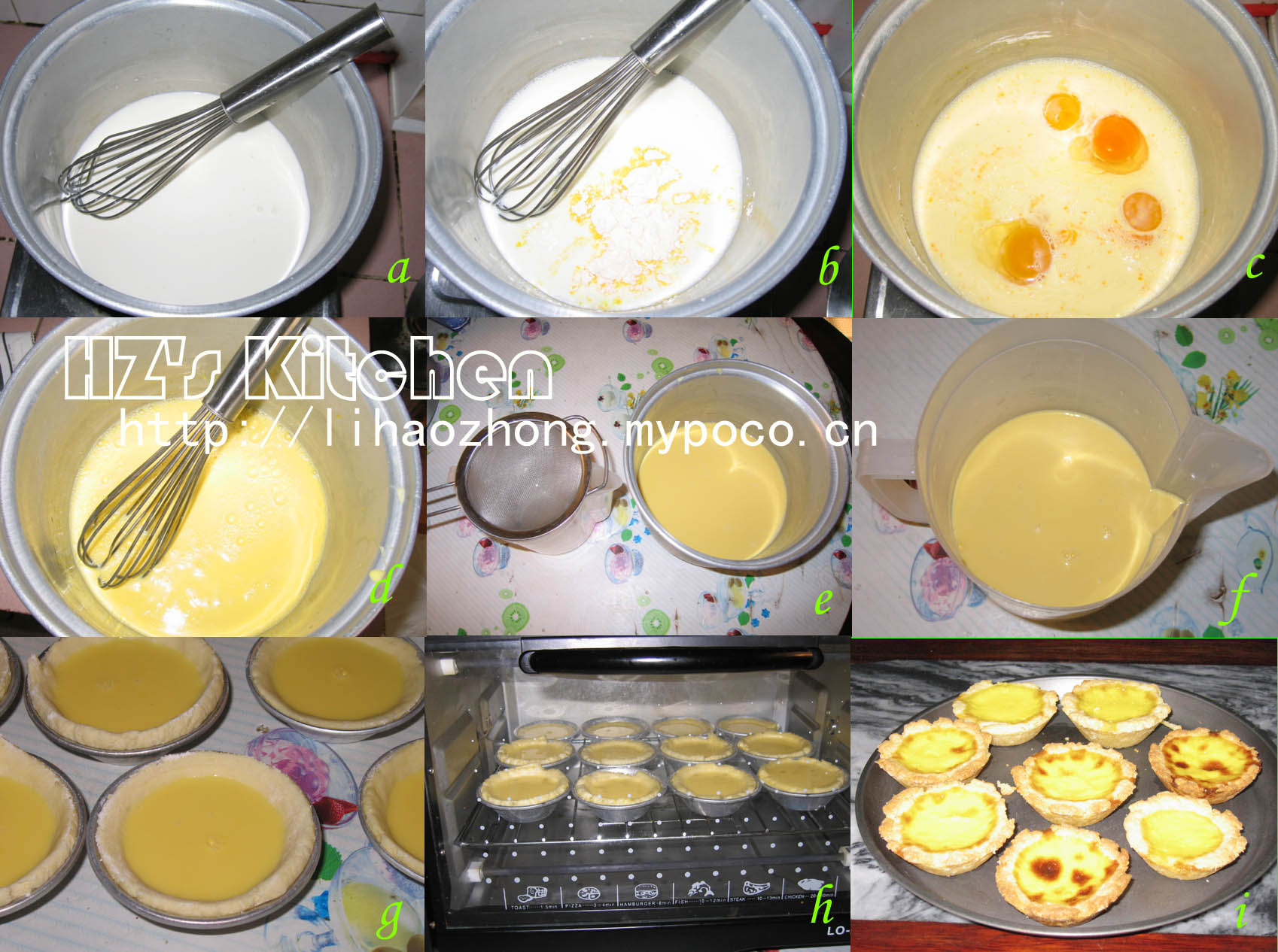 蛋挞水的做法: 1.将鲜奶油、牛奶和炼乳、砂糖放在小锅里,用小火加热,边加热边搅拌,至砂糖溶化时离火,略放凉;然后加入蛋黄和全蛋,搅拌均匀。 2.把吉士粉过筛,加入(1)中,拌匀。然后将制成的蛋挞水过滤,倒入蛋挞皮中。