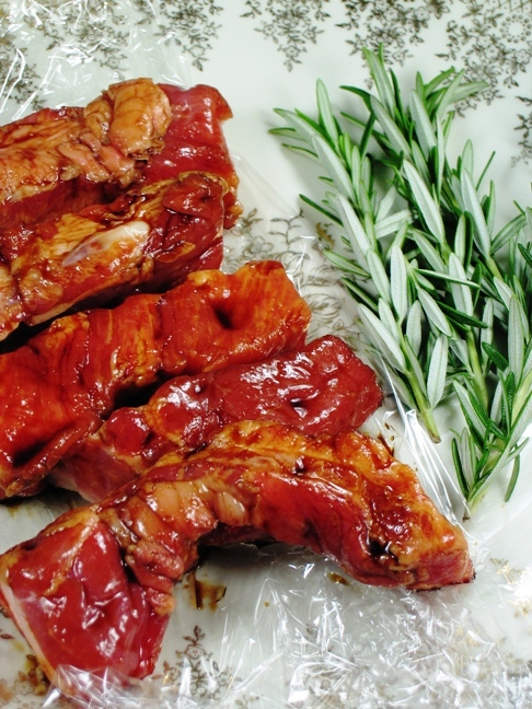 用迷*、烧烤酱将排骨腌制1个小时,撒上一些辣椒粉,在烤箱里350度烤15分钟即可。