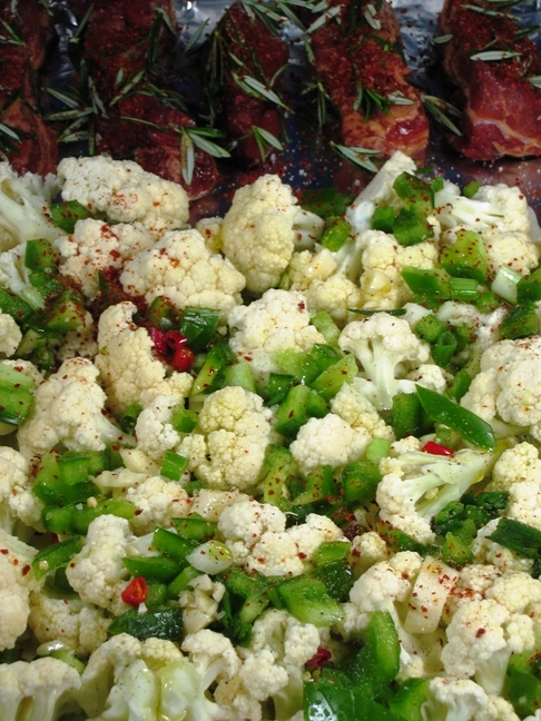 做法: 将菜花掰成小块, 放在烤盘里, 撒上盐糖, 橄榄油,少许辣椒粉,胡椒粉烤8分钟即可.