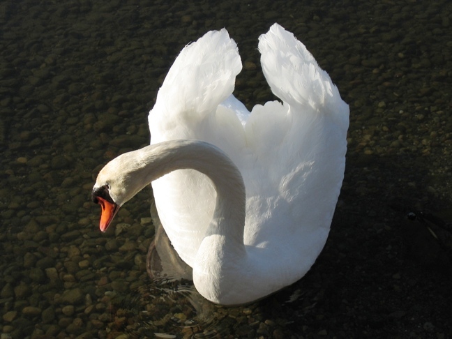 饮食男女系列12 12.粉颈的迷惑---口水鸡 历史上很少见到诗词描绘称赞人的脖子,只有一首和脖子有关,还是关于动物的,鹅鹅鹅,曲颈向天歌。凭豆芽的经验,家鹅或者天鹅如果弯着脖子向天叫,那就是攻击人的信号,赶快逃。前两天到湖边去划船,就被这只美丽的天鹅(图1)将手中的苹果一口夺去,在这个时候,豆芽想,如果人类能有这么长的脖子,站在原地不动,想吃什么一探头就入口了,想亲谁,粉颈一动就触到嘴唇了,那多好啊! 发情期的动物们不知道接吻,它们也不能说情话,爱的表达就全靠脖子了,看过“企鹅的长征”的人,都被那两只不断交颈(用颈部摩擦对方)企鹅感动。有宠物的人知
