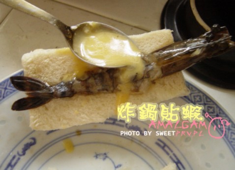 4。将调好的酱汁2倒在虾肉上,并使之粘牢。