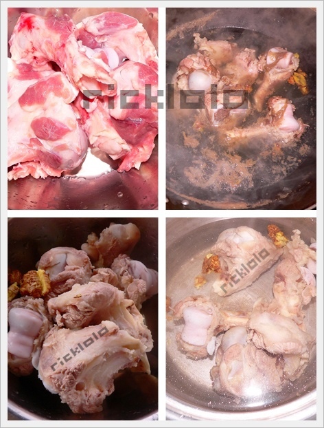 ##要炖一锅好汤,原材料一定要飞水去血沫,最好冷水下锅大伙烧开再撇一次浮沫!在大火烧开后就文火慢慢褒,这样水蒸发很大所以一次性水要足。 ##各种豆子记得一定要先用水泡泡。这样可以去杂质、泥尘,还可以选出瘪子!而且泡过的豆子不会出现“铁子”!##大枣和枸杞也要泡理由同上。但是时间不能太久3~5分钟足已! 〖图文分解〗 大骨从中间砍断,洗干净,用放了姜料酒的沸水煮10分钟,捞起冲洗干净后,冷水下锅开始炖![]() 雪豆、黑豆、绿豆用水浸泡半个小时后洗干净,在大骨大火炖到半个小时后去浮沫下锅。枸杞 大枣用水泡3~5分钟后 洗干净捞出 在大骨炖到2个半