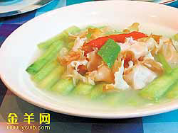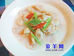 了原来的爽口。 ![]() 19:粥水浸鱼腐莲藕 夏天正是赏荷吃藕的季节,酿了鱼肉滑的莲藕口感更加丰富,而乍看之下普通的鱼 腐内里香嫩软滑,用粥水的清淡更能衬托出鱼肉的鲜甜。 主材料:粥水、鱼腐、莲藕、鱼肉滑 制法: 1、将鱼去皮刮肉,加蛋清搅拌至起胶后,油炸至表皮金*,备用。 2、将鱼滑酿入莲藕内,与鱼腐同放入粥水中煮,微滚调味后即可上桌。 要点: 鱼腐是顺德菜的精髓之一,极品鱼腐香甜软滑,由于加入蛋清搅拌,金黄的表皮下 肉质雪白。 莲藕性“寒”,用粥水煮的时间太长容易变色,煮的时间不宜过长。 ![]() 20:滑蛋牛肉粥 原料: 牛里脊肉300克,蛋1个,姜丝、葱丝、香菜末各适量,油条适量,广东明火白粥适量 辅料: 小苏打1/8小匙,盐1小匙,酒1小匙,淀粉1小匙,香油少许 做法: ①牛肉切片,加调味料腌30分钟备用。 ②粥煮滚,加入牛肉片至肉色变白,打入生蛋熄火。 ③盛入碗内,加葱、姜丝、胡椒粉、香菜末、油条即可。 Tips: 牛肉片不要煮太久,以免过老影响口感。 ![]() 21:鲜鱼粥 原料: 胡萝卜10克 石斑鱼肉15克 米20克 做法: 1.石斑鱼肉蒸熟后以大匙压成肉末。 2.胡萝卜切成丝,再剁成碎末。 3.水和米以10:1比例入锅,煮熟至黏稠,最后加入鱼肉末、胡萝卜末,再稍微煮一下即 可。 Tips: 页码:[1] [2] [3] [4] [5] [6] [7] [8] [9] [10] [11] 第8页、共11页
