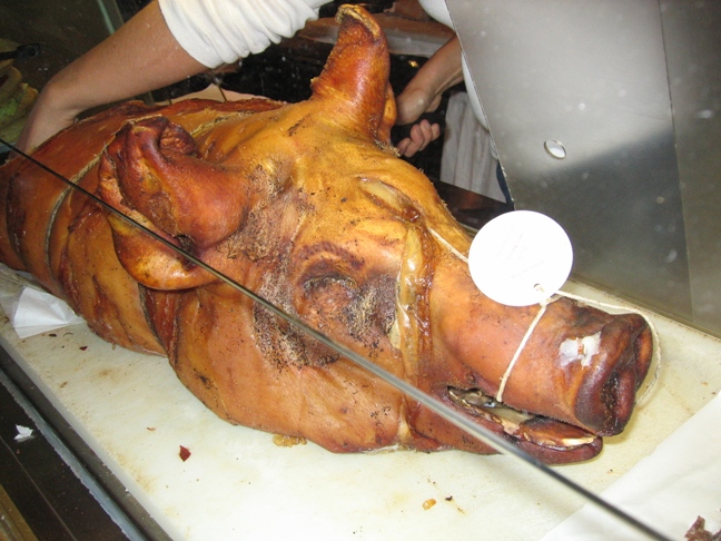 深秋的欧洲之旅(意大利Italy) 1.阿尔卑斯山脉意大利北部-腌乳猪 山区野猪 腌猪头 离开德国,穿过奥地利,就到了意大利的北部Trentino-Alto Adige(特兰迪诺-上阿迪杰),虽然是在意大利境内,所有的路标依然是德语,人们也讲德语。我们离开了高速公路,开进阿尔卑斯山脉,这是个大山区,气候寒冷,森林面积占全区面积的44%以上;重多山峰常年积雪,是旅游滑雪胜地。在河谷两岸有富饶的农夜区,主要生产水果,蔬菜和麦子,苹果产量全