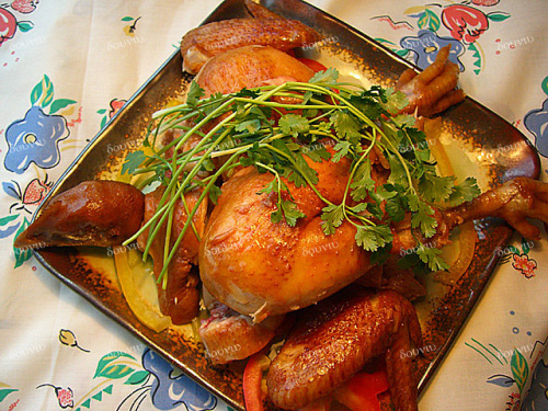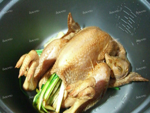 勺,再加半勺老抽搅匀(加老抽目的是为了更好上色,但不可加多,要不容易糊底),将调料汁浇在鸡的身上,按下电饭锅,等跳起后再焖炬十分钟左右即可(请根据鸡的大小调整时间,或再次按闸)