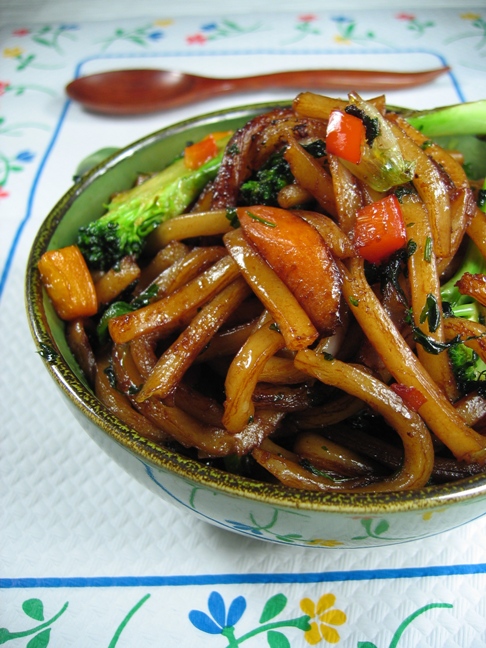 乌龟蛋西红柿汤、烤西葫芦、炒面