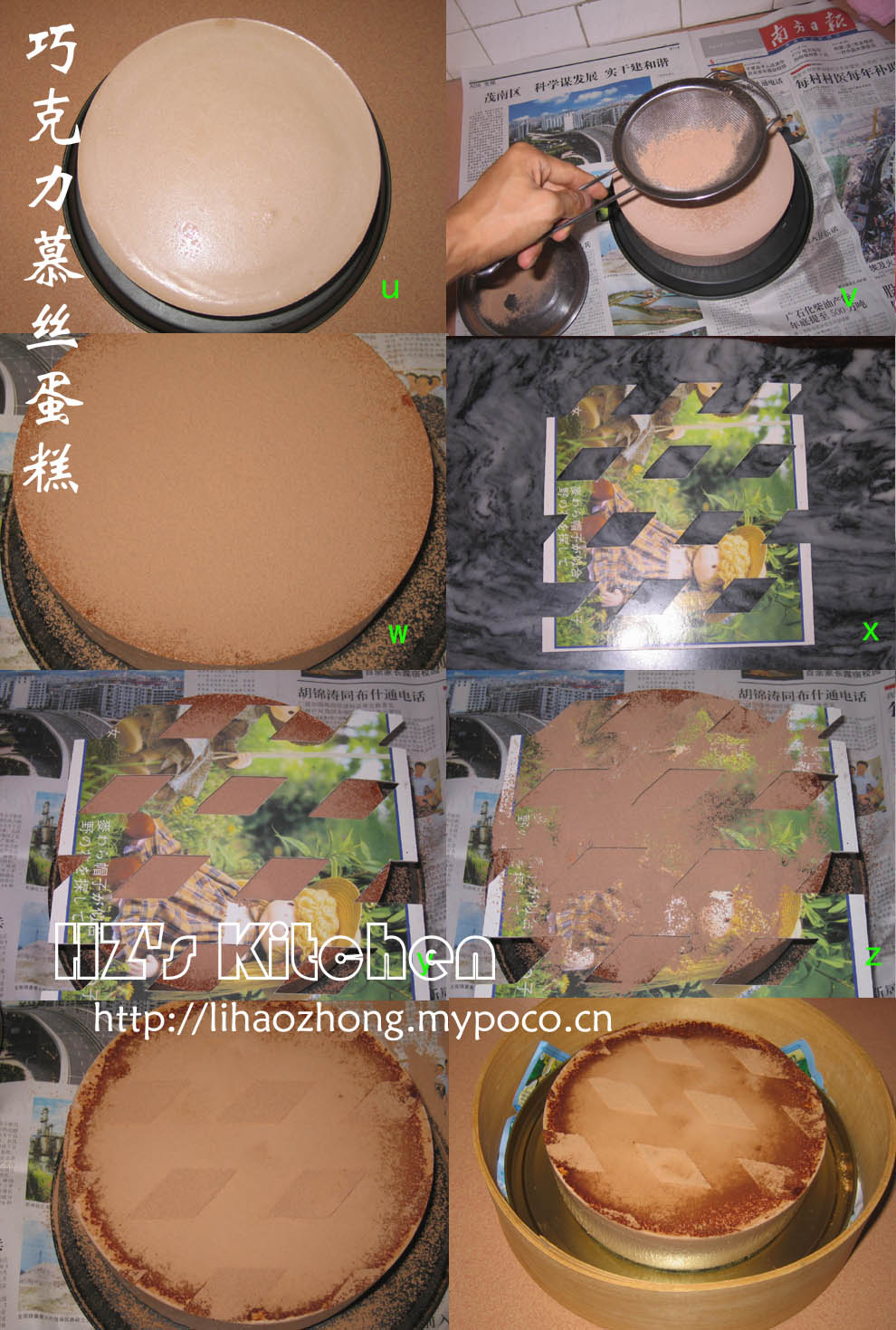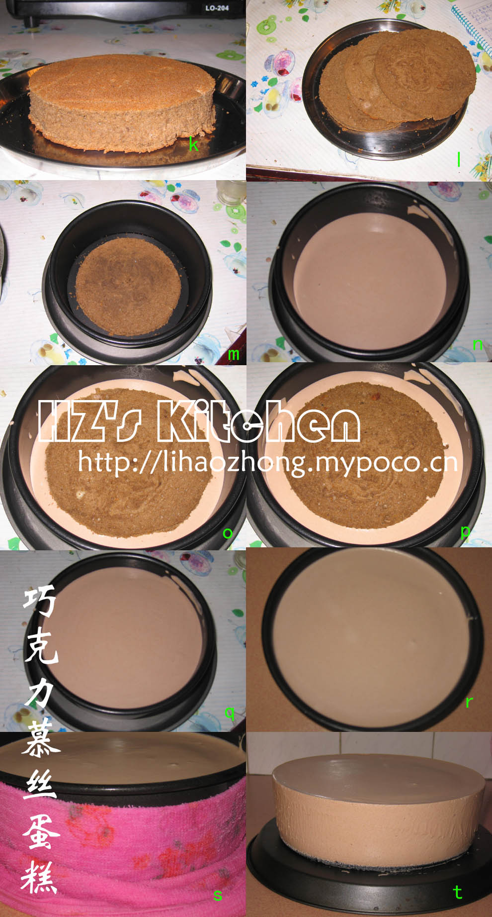 注进慕丝液;再放一蛋糕片,再注进慕丝液;依次类推,至蛋糕片用完,然后把剩余的慕丝倒入整平即可,移至冰箱冷藏一晚至慕丝凝固。出模时,先用热毛巾围在蛋糕模周围,至模壁的慕丝稍微软化便可以出模了。