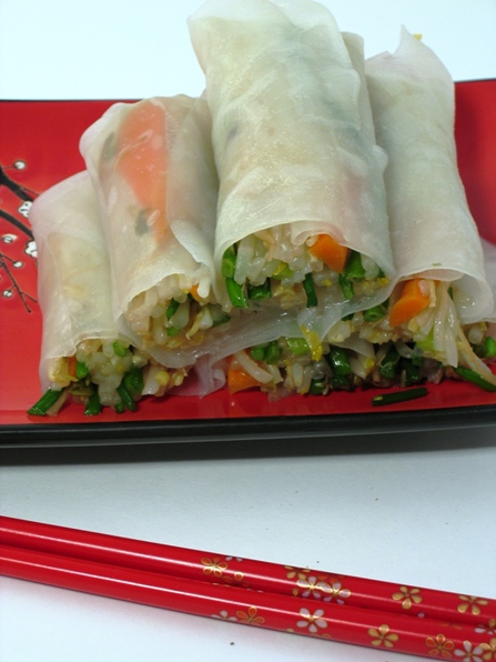 素炒海苔年糕、豆芽春卷、凉拌豆芽