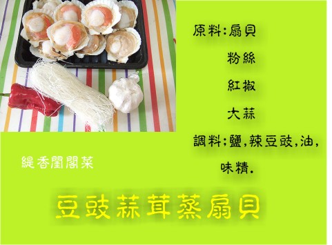 最近偶上超市买菜的机会比较少,等我有时间上超市的时候菜品都不大好了。天也热,就不大买肉类的东西。这天去买菜,就买了一盒扇贝。一盒十二个,十几块钱,还是挺便宜的。 因为是冻的,所以在做的时候就放了点辣豆豉,一来去腥,二来天热吃点辣的也开胃。