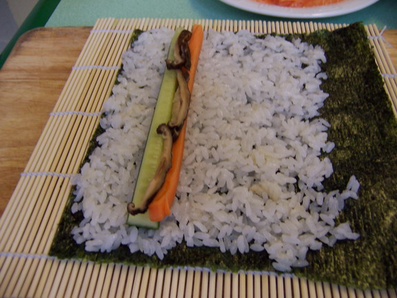缝隙间用比较软的东西填,比如香菇丝,鸡蛋,三文鱼.