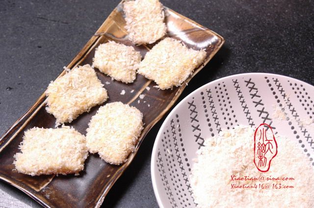 4.先拖上一层蛋液,然后再包裹面包屑
