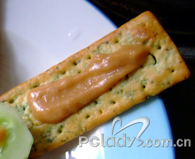 screen.width-500)this.style.width=screen.width-500;" border=0>因为番茄酱没有经过打磨调理,洋葱蒜头都还是颗粒状,吃起来有爽爽的口感。茄酱的酸爽和蒜香让人精神振奋胃口大开,中间夹杂着花生酱醇香顺滑的口感,配上松脆的苏打……欲罢不能!