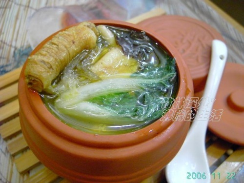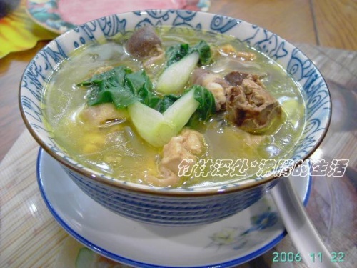 [食得是福]~久违的味道~瓦煲花旗参煲鱼翅走地鸡汤~(材料制作见文后~) 大胃王滴那碗~鱼翅都溶入汤中了~ [竹林深处]~记得小时候家里的黄豆炖鸡汤是那么清甜可口~