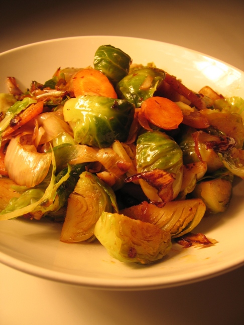 豆豉球芽甘蓝、拌水罗卜、炒饭、雪菜粥、牛油果酱豆豉球芽甘蓝 做法:大葱豆豉炒香,放入球芽甘蓝、胡罗卜炒2分钟,小火闷8分钟即可。