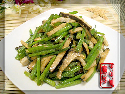 做法:炒锅置炉上开大中火,内放2大匙橄榄油,炒香蒜蓉,倒入五香豆干丝翻炒1分钟,加香芹段再炒1分钟。接着倒入3料翻炒几下后加肉丝炒至肉丝变白断生,放下鸡精兜匀即可。