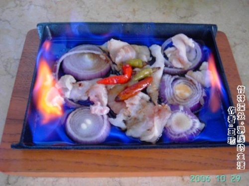 火焰铁板鳄鱼肉贺重阳~祝大家都青春不老~生气勃勃~!材料:鳄鱼肉切片\洋葱切圆片\用红绿野山椒+葡萄籽油+生抽+古月粉调成浇酱~备用~页码:[1] [2] [3] [4] 第1页、共4页