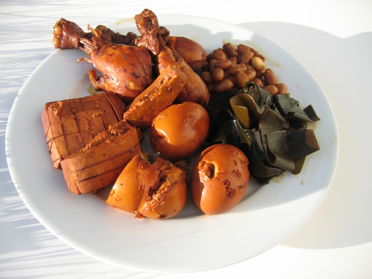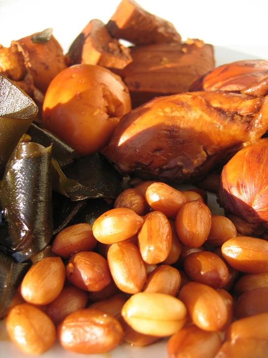 歌乐山辣子鸡丁、卤鸡腿、鸡蛋、海带、花生、豆腐干