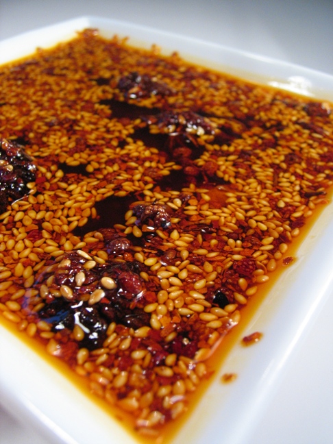 做法:油热后,倒入辣椒面、芝麻、花椒、大料、五香粉中,冷却后即可食用。