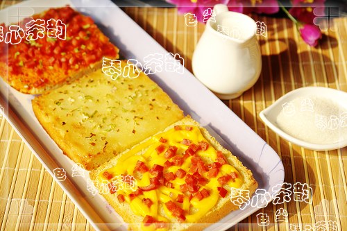呵呵~~朋友看了我的法式早餐吐司后,问我吐司还有啥吃法,正好前天做的吐司还剩半条,就做几个口味来喂喂自己。其实这个东东素口吃、抹着酱吃、蘸着炼乳吃、泡着牛奶吃、煎着吃,咋吃都好咧~~