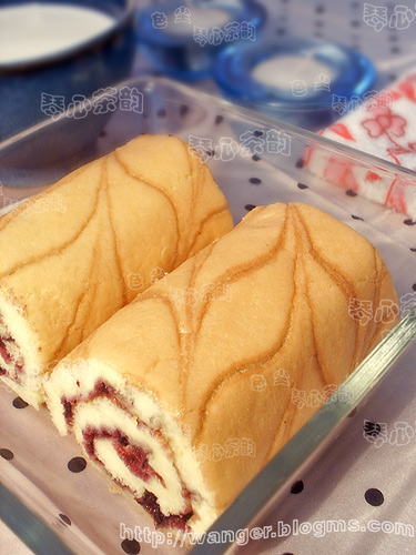 原料:低粉50g 玉米淀粉20g 鸡蛋三个 白糖75g 蓝梅果酱