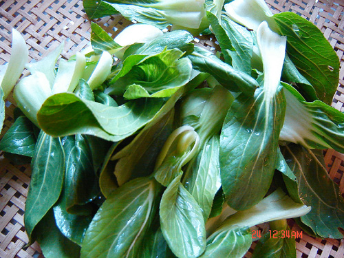 青菜洗干净,我爰吃整片的菜叶,就没有切咯。