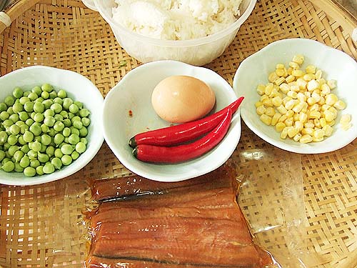 在家吃早饭是我家里的传统美德,变着花样做早饭是我的传统工作。我家早饭的内容可丰富咯,点击率高的有三明治、葱油饼、菜泡饭、粥、玉米饼,还有就是炒饭了。 炒饭也是我喜欢做的,前一天晚上做的饭,第二天一早炒一下,省事啊。 昨天在超市买的真空包装的鳗鱼,本来以为买的是照烧鳗鱼,回来细看原来是烤鳗,哎,这个做法肉质就不是太嫩了,不过鳗鱼的香味还是有的。