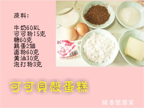 偶好久米做蛋糕了,前几天有个聚会,偶就做了点可可蛋糕,带去给大家尝尝。 这个蛋糕由于用到了泡打粉,所以就不用打蛋器打发,做起来是很方便的,不过泡打粉的用量要掌握好,少了蛋糕就发不起来,多放了就会有苦苦的怪味道。 我的贝壳蛋糕模只有四个,所以做出的不全是贝壳形状的咯,这个小花朵的我也挺喜欢的。
