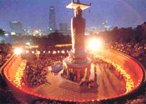饮食 韩国最有名的特色菜有夹缝方便面、明洞炸猪排、明洞饺子等,其中明洞炸猪排和明洞饺子的日本等外国回头客非常多。另外,明洞老妈店的海鲜汤也是非常美味的,位于明洞中央路上的 ES QUIRE和SPR IS之间。 住宿 在韩国,大旅馆都是采用预订制,就是事先一定要订房。 交通 在汉城有许多出租车,其中黑色的是