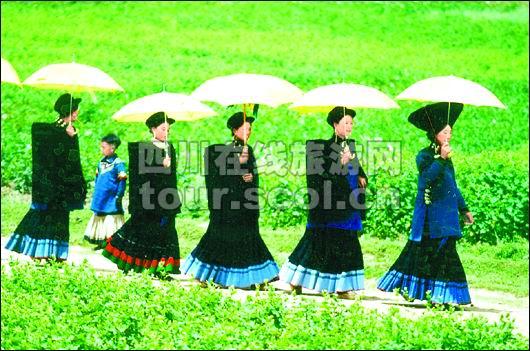 隐藏姑娘的伞墙——布拖姑娘大多很害羞,游客欲为其照相时,有的就把脸一埋,将伞挡在面前,姑娘的脸不见了,镜头里仅剩一片*,那伞好似一堵遮羞之墙,让人对害羞的姑娘多了几分联想。在西溪河区人山人海的街上,在一片*的世界里,几把黄伞拼成球形屏障,那多像一个*的球摆在街中间,却不见伞中人,众人伸颈而观,只见几个姑娘躲在伞墙里面选口弦琴。 撑起的伞海——伞最多的地方是在街上和火把场外,成千上万的人拥在街上,许多的黄伞在街上撑开,仿佛成了一片伞的海洋。 伞是最好的照相背景——布拖女子爱照相,照相又离不开黄伞,她们总爱将黄伞作为背景,这成为了