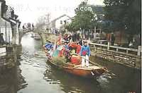 周庄的摇快船始于清初。经过悠悠数百年的沿袭,摇快船已成为民间良辰佳节、喜庆丰收、婚嫁迎亲时群众喜闻乐见的大型娱乐活动。农民自备船只、服装、道具、锣鼓,自娱自乐,具有浓郁的水乡风情。每船备头篙,大小橹各一置船体左右两侧,每船配有十五、六名身强力壮的橹手,出跳、扯篷、把橹,相互配合,船似飞箭出弦,用锣鼓助威,场面壮观。