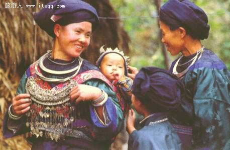 云南的水族有8000多人,占中国水族人口的2%。主要聚居在富源县黄泥河乡,彝良县的大河,龙安等地也有分布。 【服饰】 水族在建国前处于封建地主经济发展阶段,以农业经济为主,主产水稻,兼手工业,善于纺织、染布,崇尚黑色和藏青色。这个特点,在水族的服饰上有鲜明的表现。水族男子穿大襟无领蓝布衫,戴瓜皮小帽,老年人着长衫,头缠里布包头,脚裹绑腿。妇女穿青黑蓝色圆领立襟宽袖短衣,下着长裤,结布围腰,穿绣青布鞋。 水族女服多以水家布缝制,无领大襟半长衫或长衫。长衫过膝,一般不绣花边。而节日和婚嫁盛装与平时截然不同。婚礼服上装的肩部一圈及袖口,裤子膝弯处皆镶有刺绣花带,包头巾上也有色彩缤纷的图案。头戴银冠,颈戴银项圈,腕戴银手镯,胸佩银雅领,胸前的银饰是节日才佩带的。耳垂银耳环,脚穿绣花鞋。新娘子往往被打扮的花枝招展,风采翩翩。此外妇女刺绣的背带更有艺术性。说是“带”,实际上是一块刺绣华丽的“T”形“帘子”,上端两边有带,“帘子”的大小可包住幼儿。它是将白色马尾缠绕上白丝线,再加上其它彩色丝线,先把各种图案分别刺绣好,最后将绣好的图案拼镶到背带布料上做成的。背带美观实用,是母亲对出嫁女儿最好的礼品。结了婚的妇女用背带背着她的小宝宝。背带绣得十分精致,这也是她个人装饰的一部分。 【习俗】 &nb