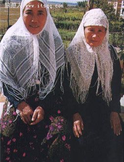 丧葬食俗因地区不同而有所区别。有的地方办丧事三天不动烟火,由附近的亲戚邻居送食,禁止请客,三天后方进行纪念活动。 婚俗 结婚筵席一般都要8—12道菜,忌讳单数,象征新婚夫妇永远成双成对。甘肃地区的新婚夫妇生头胎,男方要携带礼物去女方父母家及至亲家报信,10天内岳母要携红糖、米等营养品和小孩穿的衣物来看“小月子”。男方家要设宴款待来客。 【服饰】 由于散居的原因,使回族在服饰上最具有民族特色的就是礼拜帽,一般是用白布制做,式样为无檐小圆帽,也有戴黑色的,最初是作礼拜时戴,现在已成为民族标志,平日也随处可见。回族妇女习惯戴披肩盖头,只把脸露在外面,根据年龄的不同,选用的颜色有所不同,姑娘用绿色的,中年用青色的,老年用白色的。 【食俗】 回族分布较广,食俗也不完全一致。如:宁夏回族偏爱面食,喜食面条、面片,还喜食调合饭。甘肃、青海的回族则以小麦、玉米、青稞、马铃薯为日常主食。油香、馓子是各地回族喜爱的特殊食品,是节日馈赠亲友不可少的。民间特色食品有酿皮、拉面、大卤面、肉炒面、豆腐脑、牛头杂碎、臊子面等。多数人家常年备有发酵面,供随时使用。城市的回族一年四季早餐习惯饮用奶茶。 &