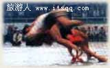每年的中秋时节,朝鲜族人民聚居的村屯都要自发地举行一次体育比赛,摔跤则是其中的一项重要赛事,参加摔跤项目的小伙子们,个个顽强勇敢,骁勇骠悍。比赛场上龙腾虎跃,热闹火爆,四周观众心情振奋,群情激昂。