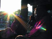 尼泊尔人有句老话:“人生命的入口只有一个,出口却可以有许多个。”人如果能使生命的出口充满神圣的意义,则可能从令人疲惫不堪的轮回之路上获得“解脱”。 以达摩般的盘膝姿势正襟危坐,就好像身下的不是走廊的地板而是来自梵天的一朵莲花。 乘坐小型飞机跨越雪山。
