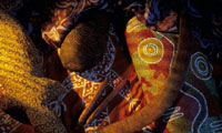 ![]() 如果说土著人生活中有哪些东西能够引起白人的赞赏和共鸣,那么,首当其冲应该是土著艺术。澳洲土著人虽处在较为原始的生活环境里,但他们的文化艺术却相当发达,令不少当代艺术家们叹为观止。今天,土著艺术已同现代艺术一起成为澳大利亚当代艺术的两大主流。有人用"梦想"两字来概括澳洲土著艺术的全部,颇为贴切。土著人透过艺术的梦想,跟他们的祖先交流心灵。在梦想的世界里,人们仿佛看到了关于天地创造、民族起源