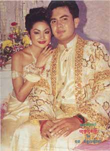 柬埔寨地处热带,男女都成熟较早,一般女子十五六岁、男子二十左右就要结婚,否则会为世俗所轻视。柬埔寨人认为,结婚是男女双方依照法律相互结合的一种隆重的约定,不能任意中止这种结合。柬埔寨的婚姻习俗,有一些独特的仪式。 柬埔寨新婚夫妇 当女孩子到了结婚年龄时,父母就要把她关在房间里,不让见阳光,到了规定日期才能出门,这段时间称为“蔽日期”。按照家庭的贫富程度,蔽日期可规定为三个月、六个月或一年。蔽日期开始时,女青年的父母要请僧侣来诵经祝福。女青年在蔽日期间,任何男人都不能见她,