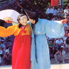 面具舞蹈剧由好几幕组成,剧中有许多戏剧元素,但不同于现在戏迷熟悉的演出。在所有表演中舞蹈比对白重要得多,并且演员们都静悄悄的不说一句话,由音乐家和歌唱家为他们伴奏。在管弦乐器和打击乐器的动人音乐伴奏下,现场舞蹈表演是面具舞蹈剧表演中的重要部份,演员们在舞台上翩翩起舞。舞蹈表演使整出戏剧更加生动,但有时根据情节单独表演