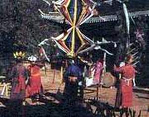 祭天有祭天场,一般是在离村不远的地方,用石头围砌成方形或长方形的场地,内有祭台。讲究点的祭天场还有内场和外场,周围栽培高大的常青树,风景优美,能容纳几十到一、二百人。没有场地的城郊或坝区中心春节期间也轮流在各家院中围栅搭蓬来祭天。 在同一个祭天场祭天的人叫“祭天群”,一般是由住在一个村的家族中的几房人组成。每个家族和亲近家族的祭天群都有自己的名称。 ![]() 以前,纳西族的祭天群有“浦都”,“故序”,“故在”,“故上”,“阿雨”等名称。这中杂居在各地不同名号的祭天群,是与古代纳西人的不同氏族或部落有渊源关系的。大的祭天群有数十户,小的十来户。