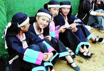 ![]() 俗话说:“男大当婚,女大当嫁。”可是,巴马县所略乡一带的瑶族(土瑶)却与众不同,是“女大当婚,男大当嫁”,别具一格。 这里的“女婚男嫁”特点,大体上有这么几个阶段。当男女青年都长到18岁后,就开始讲究修饰,乔装打扮一新,女青年似花蕊朵朵,男青年个个英俊潇洒。通过赶街、走亲访友、耍老表、节假日唱山歌,打陀螺,抛毽子等方式,进行谈情说爱,互相了解,这是认识阶段。 在认识基础上,双方互请到家做客,彼此进一步掌握对方为人、性格,家庭成员,家庭经济等情况。这是加深认识、了解、建立爱慕之情阶段。每逢农忙季节和节假日,女方总要请男方来帮助犁地、耙田,耕种,收割,盖房子等,这是考察对方勤劳能干还是好逸恶劳阶段,是最关键的阶段经过一两年的交往接触,双方产生了深厚感情,女方就偷偷买布,精心地打好精致的