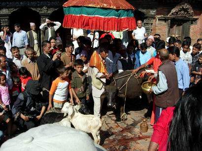 ![]() 尼泊尔首都加德满都号称“万庙之城”。距该市以南20公里的地方,坐落着古老的达克辛卡里神庙,它是尼泊尔最重要的神庙之一,每年至少有一半尼泊尔人前往祭拜。 外国人不敢光顾 达克辛卡里神庙修建于马拉王朝时期,当时在位的是尼泊尔历史上最著名的国王贾亚斯堤·马拉。传说当时的尼泊尔,由于瘟疫横行,成千上万的民众染病死去。马拉国王无计可施,非常着急。一天晚上,国王在梦中见到卡里女神对他下令说,如果想让瘟疫停止,就在加德满都以南地区修建一座神庙,并当场宰杀108头水